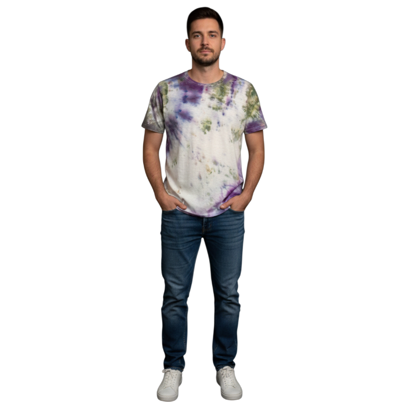 Whether you dress it up, layer it, or wear it every day, this green and purple ice-dyed tee brings colour, character, and craftsmanship into your wardrobe.
